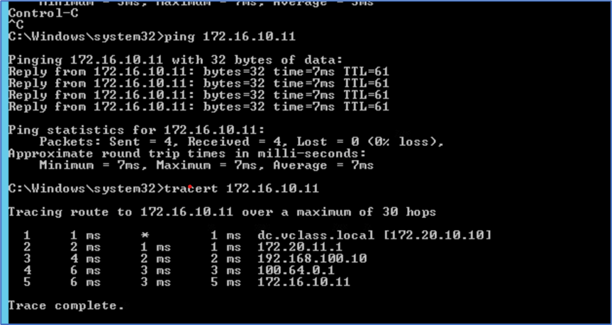Ping and traceroute from Admin PC towards Web Server VM.