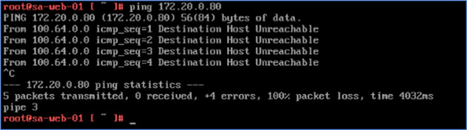 Login to Web server ( Console/SSH) and initiate ping towards Admin PC (172.20.0.80).