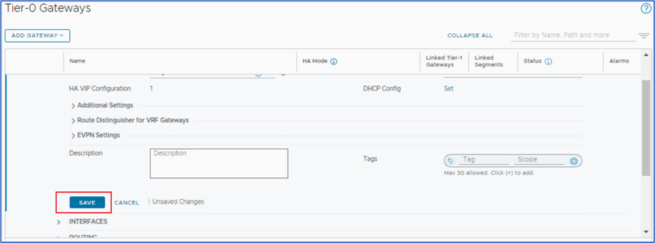 Step 3 : Click on Save Tab to apply configuration at Teir-0 router level.