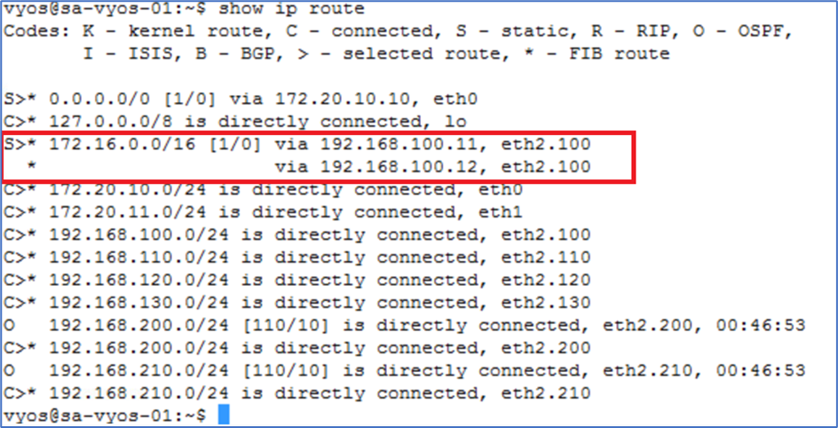 Figure 13 : Validate 172.16.0.0/16 route is available on VYOS Router