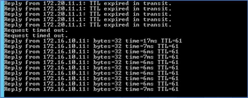 Ping Test from Web server (172.16.10.10) PC to Admin PC(172.20.10.80)