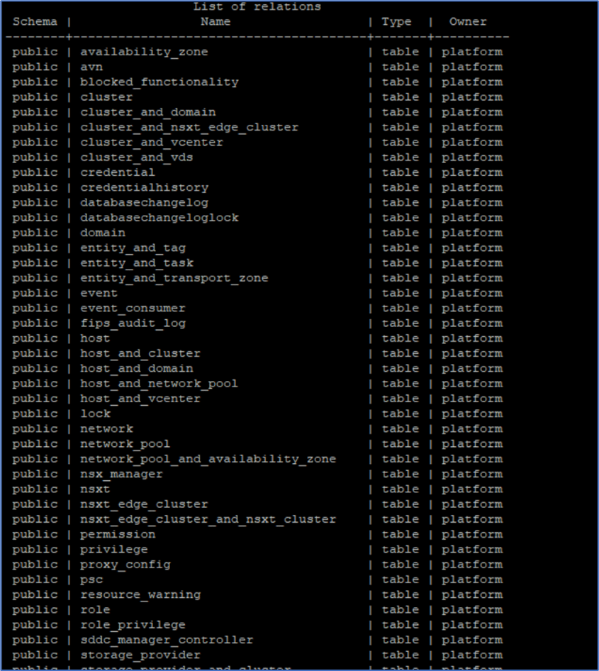 I decided to remove AVN and NSX-T Edge clusters from SDDC database which will delete object entries from SDDC database only and related NSX-T objects needs to be deleted manually from NSX-T UI or API. We will login to SDDC manager UI and will access Postgres database to make changes on Tables.
