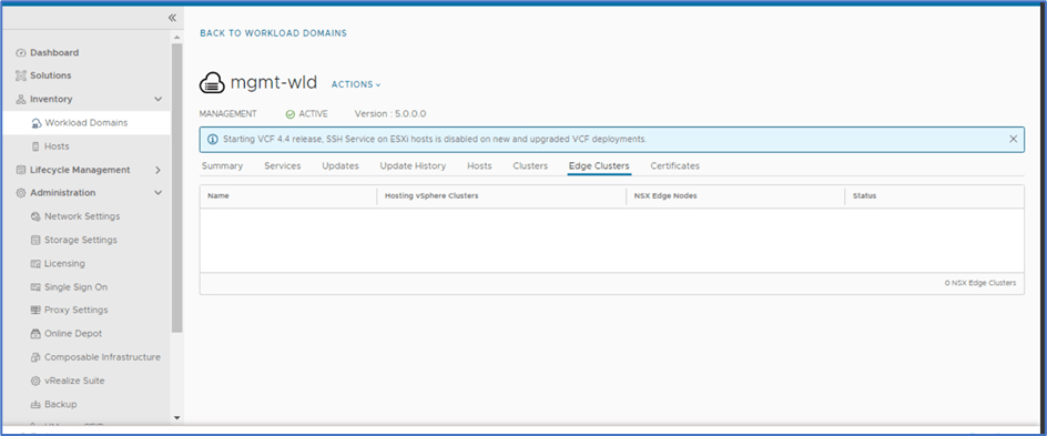 Validate that NSX-T Edge cluster has been removed from SDDC manager UI.