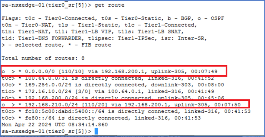 Validate that we are getting default route on NSX-T edge gateways from OSPF.