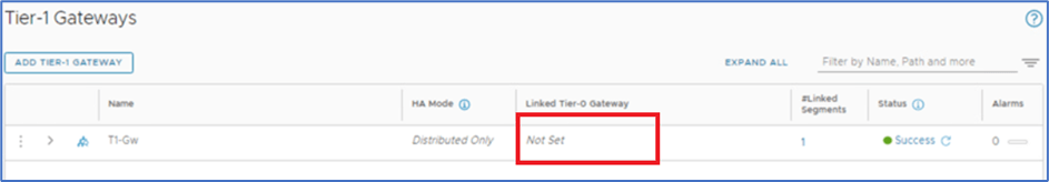 Note: Refer below snapshot, Tier-1 gateway is not attached to any Tier-0 gateway.