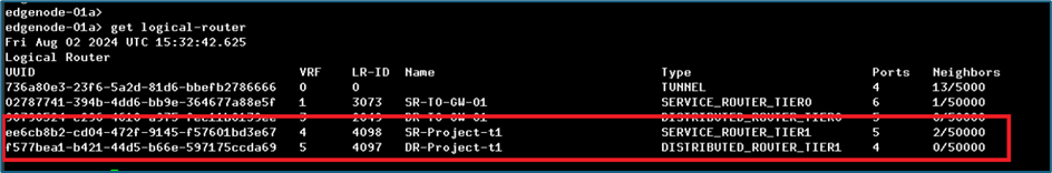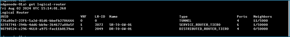 Now we will validate routing and gateway router from edge CLI. In below screenshot, you can validate that SR & DR routers has been created.