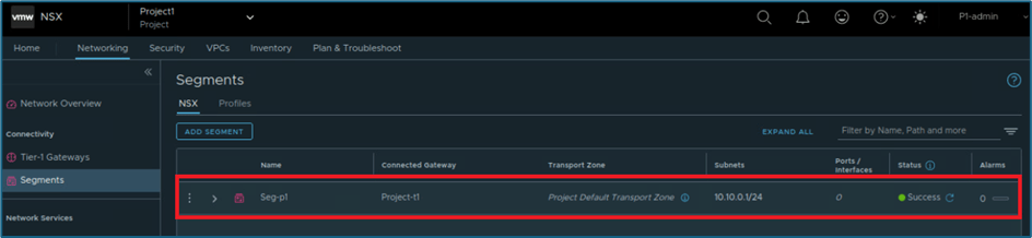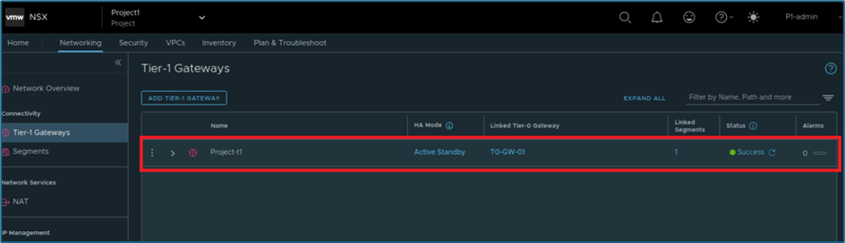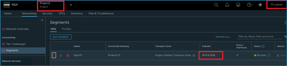 Now we will login to both Projects (Project 1 & 2) with their project-admin users (P1-admin and P2-admin) to create Tier-1 routers and segments.