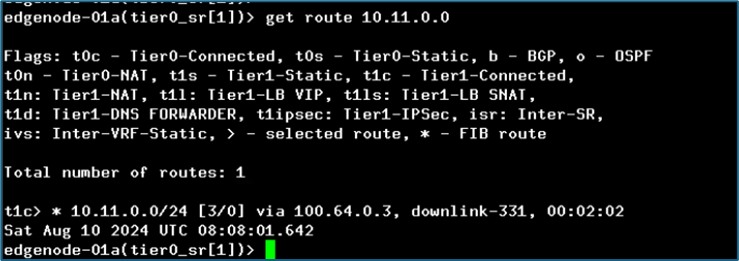 Now we will validate that Tier-0 SR router is receiving routes for subnet 10.11.0.0/24