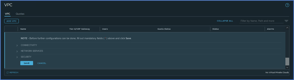 This blog will cover VPC creation and User role section and other configuration will be covered in next blog. Let jump into NSX configuration and validate configuration.