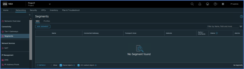 Navigate to NSX>>Networking>> Segments and validate that there is no Logical segment is created. Once VPC users or admin start creating VPC subnets, logical segments will be created .