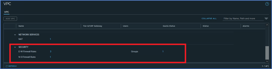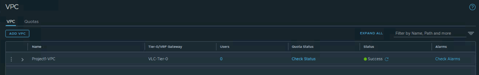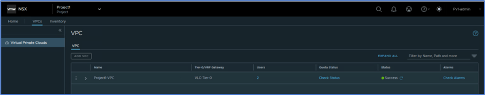 Now you can validate that VPC has been added. You can validate status , alarm and other configuration like attached Tier-0. Please refer below screenshot to find more details.