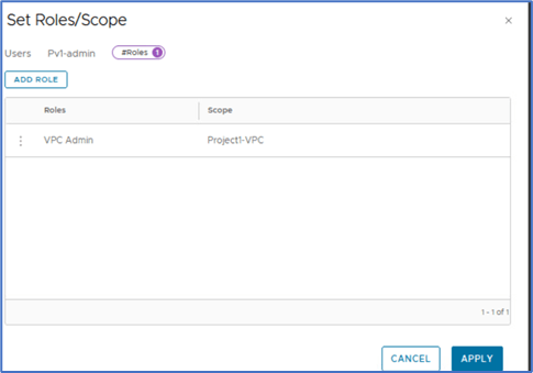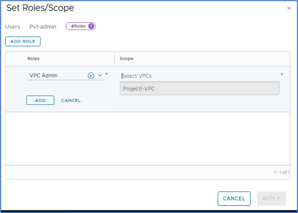 Note: Please apply above configuration to User role:VPC admin . We will add P1s-admin user(Local) to VPC from VPC-admin user role.