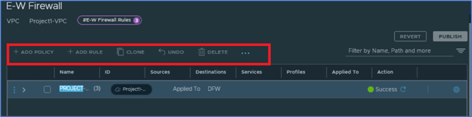 Click on DFW under Security Tab and validate that User:P1n-admin have access to view rules but don’t have permission to add policy and rules.