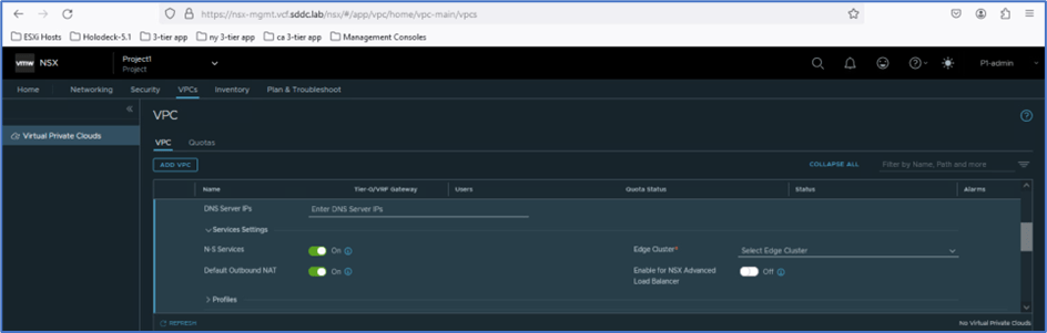 Scroll down same screen for VPC creation and you can choose for Profiles for VPC subnet logical segments. In this blog we go with default profiles.