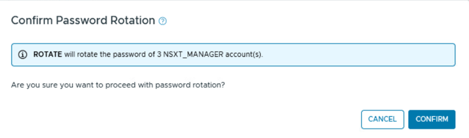 SDDC Manager will rotate the password for a specific user, generating a random password that adheres to SDDC Manager’s password complexity requirements.