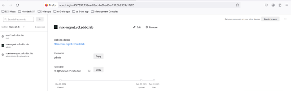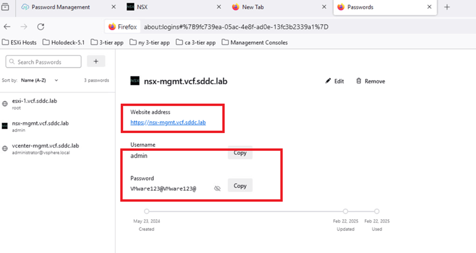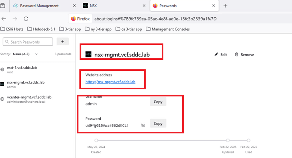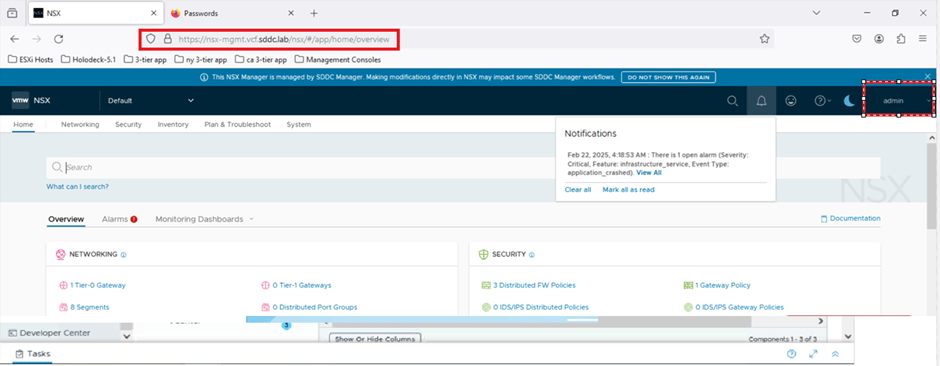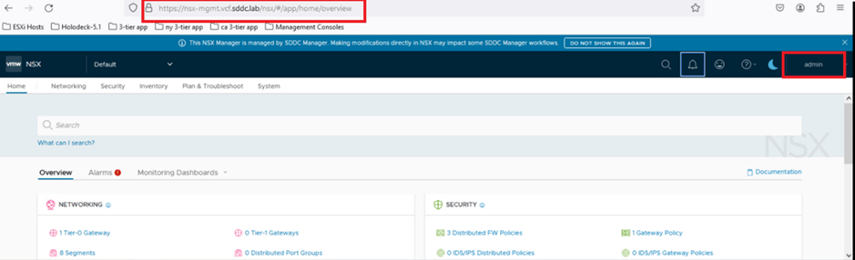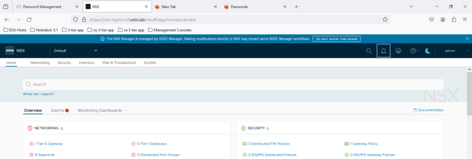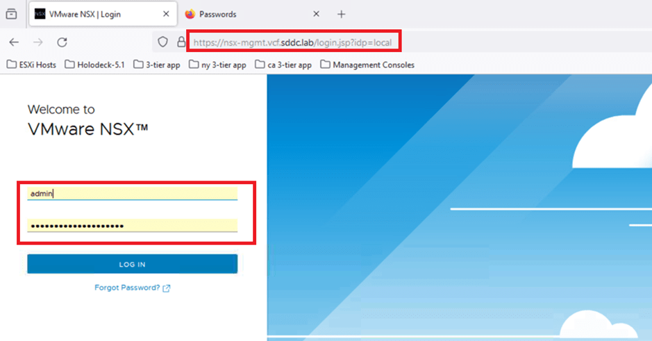 - Open a web browser and enter the URL: https://nsx-mgmt.vcf.sddc.lab.