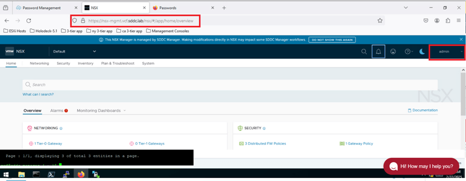 Next, we will verify that we can log in to the NSX Manager UI using the updated password.
