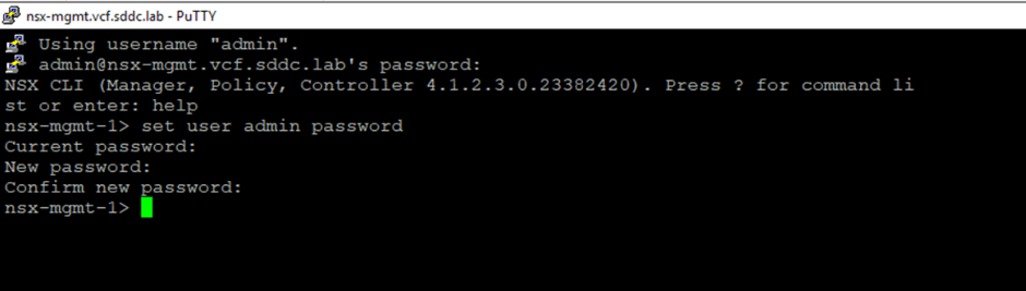 We will first change the password for the admin user in the NSX Manager CLI and then update SDDC Manager to ensure synchronization.