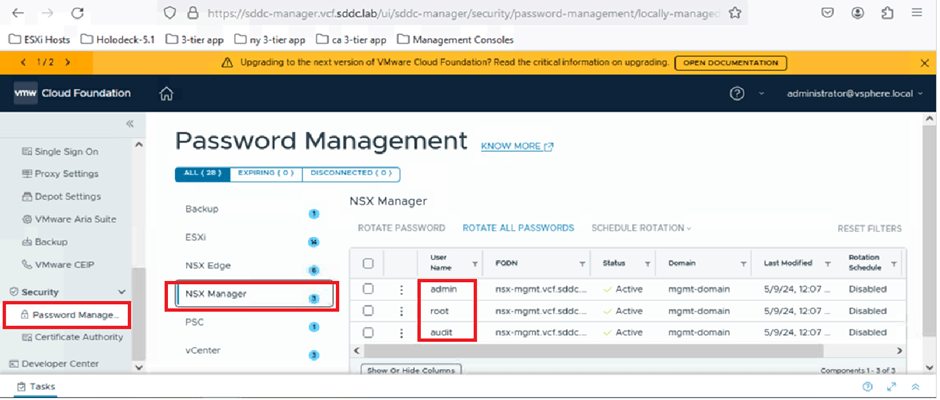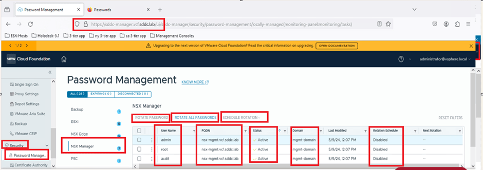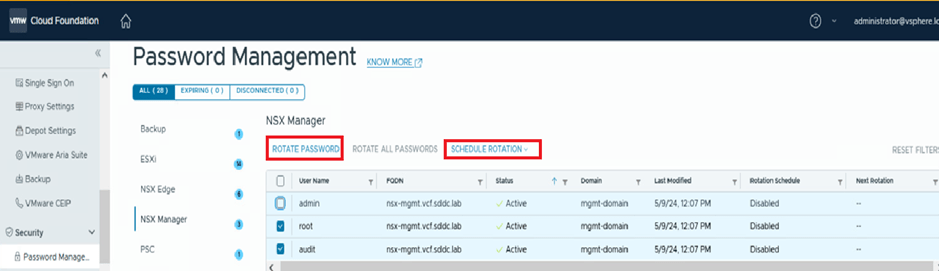Rotate all password for NSX users from SDDC manager UI